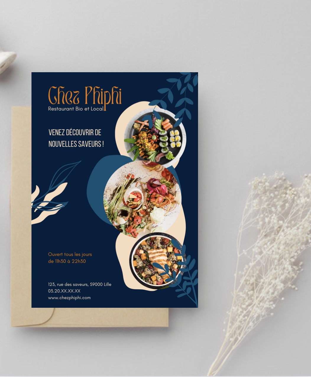 Nous collaborons étroitement avec vous pour capturer l’essence de votre message, en le traduisant visuellement de manière à attirer et retenir l’attention. Chaque aspect de votre flyer A5, de la sélection des couleurs à la typographie, est soigneusement conçu pour maximiser l’impact auprès de votre audience cible.